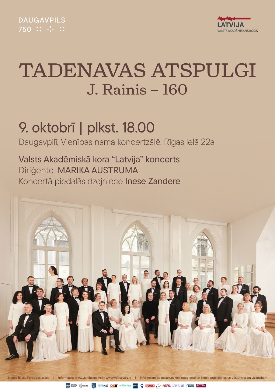 Šī gada 9. oktobrī plkst. 18.00 Vienības nama koncertzālē (Rīgas ielā 22a) uzstāsies Valsts Akadēmiskais koris „Latvija” ar programmu „TADENAVAS ATSPULGI. J. Rainis – 160”. Diriģente Marika Austruma. Piedalās dzejniece Inese Zandere. Koncertā kora a cappella izpildījumā skanēs latviešu komponistu kora mūzika ar Raiņa un Ineses Zanderes dzeju. Kā atklāj programmas veidotāji: „Dzejnieces stāstījums līdztekus piesātinātajam kora dziedājumam klausītājus ievedīs Raiņa bērnības māju pagalmā, ielūkosies saules pielietajās istabās un metīs pārdomu tiltus gan uz plašo Raiņa daiļrades mantojumu, gan dzejnieka mīlestību uz Tadenavu.”
