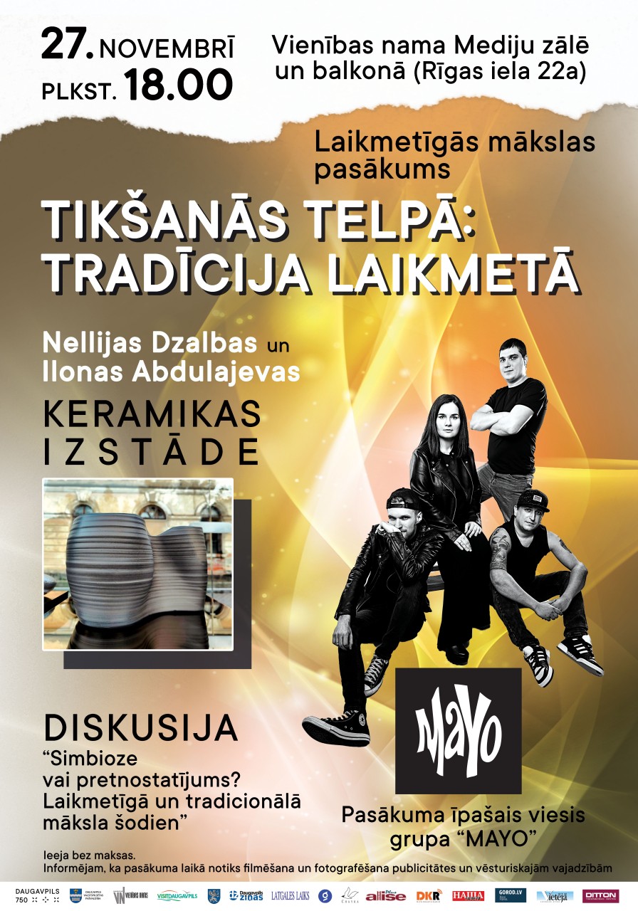 Pasākuma laikā apmeklētājiem būs iespēja redzēt keramiķu Nellijas Dzalbas un Ilonas Abdulajevas darbu izstādi, piedalīties diskusijā par tradicionālās un mūsdienīgas mākslas līdzāspastāvēšanas nosacījumiem, bet vakara noslēgumā baudīt pasākuma viesu – grupas “MAYO” – koncertu. Ieeja ir bez maksas. Informējam, ka pasākuma laikā notiks filmēšana un fotografēšana publicitātes un vēsturiskajām vajadzībām. Papildu informācija: DVPI “Vienības nams” Latviešu un latgaliešu kultūras centrs t.: +371 654 27552 www.vienibasnams.lv ![]() |